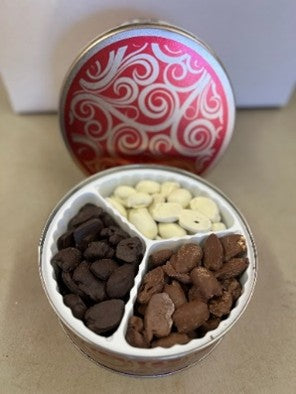 Small Assorted Holiday Pecan Tin - White-, Milk-, and Dark-Chocolate